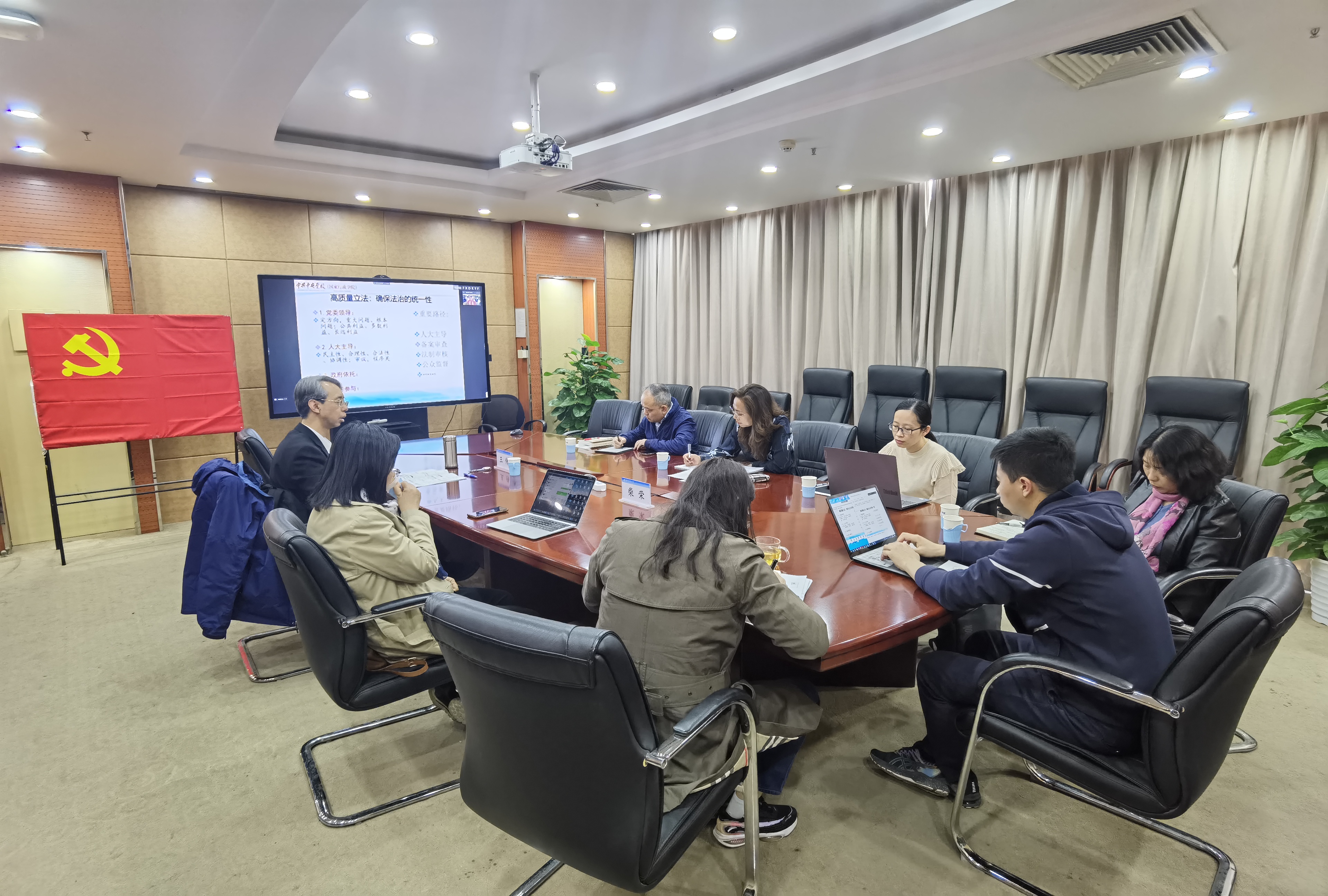 屈智勇院长就“地方立法的原则”“社会信用体系建设”等主题进行交流,党委青年委员杜静元等与会人员还就“环境保护立法与执法”等展开了深入研讨。