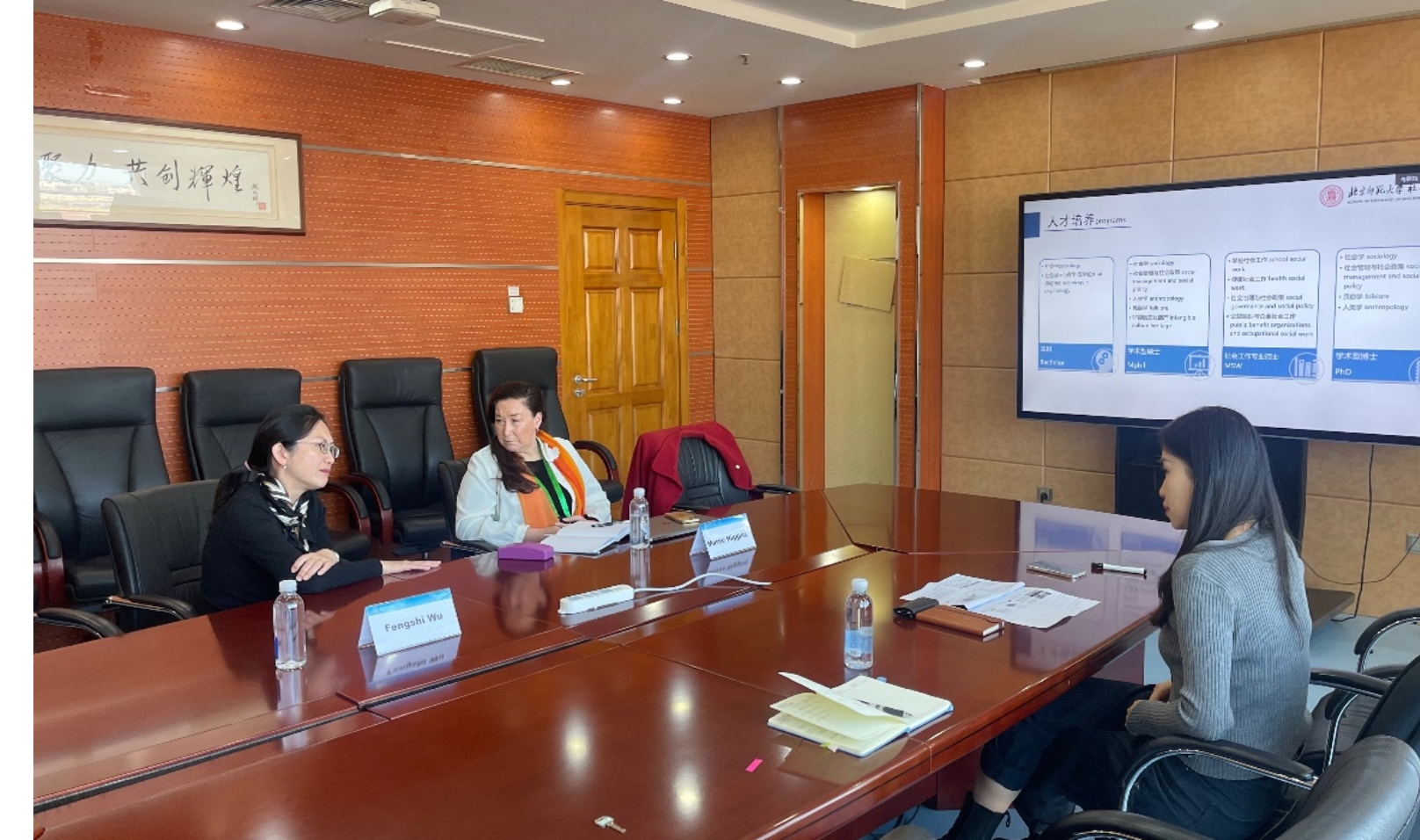 付媛媛副教授对新南威尔士大学一行两位教授表示热烈欢迎,并介绍了福利姬 的院系概况、学科发展、专业设置以及人才培养特色等基本情况。Fengshi Wu教授就新南威尔士大学社会科学学院的学科布局、人才培养体系和优势研究方向等进行了详细介绍。Maree Higgins教授则重点介绍了新南威尔士大学社会工作专业的课程设置、实习安排、考评指标和国际交流等内容。双方就社会工作专业的人才培养布局和相关研究领域的合作开展了深入的交流。
