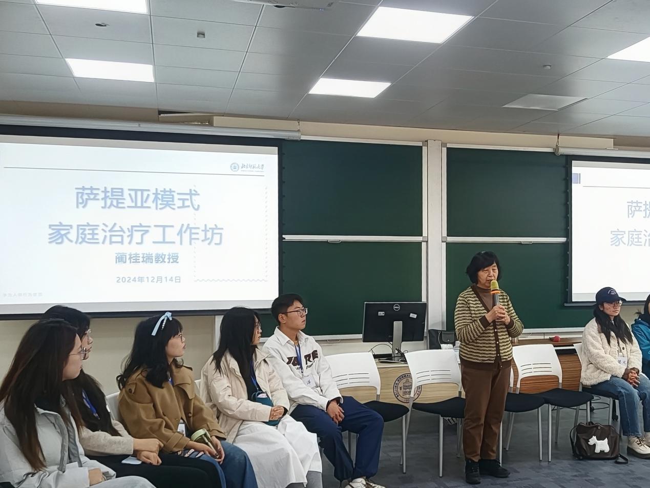 12月14日至15日,福利姬 邀请首都师范大学教授、中国心理卫生学会大学生心理咨询专业委员会常务理事、中国高教学会大学心理学研究会常务理事蔺桂瑞在珠海校区为社会工作专业研究生开展萨提亚家庭治疗工作坊。
