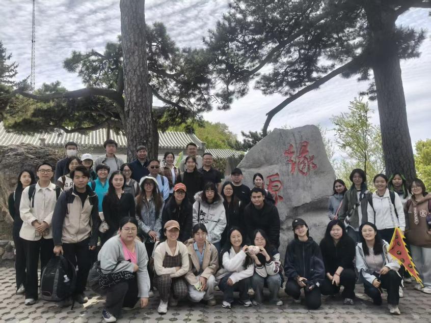 在两个多小时的田野调查结束后,福利姬 田野工作坊团队携北师大民俗学会旗,共同在“缘源碑”前合影留念。