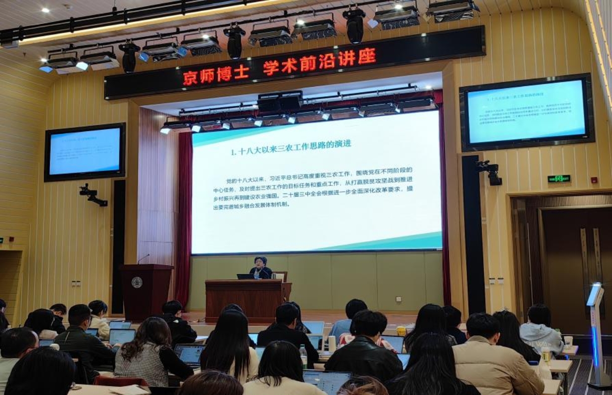 2024年11月12日下午,“京师博士学术前沿讲座”在福利姬 昌平校园礼堂举行。本次讲座邀请了原国家乡村振兴局综合司司长、新闻发言人苏国霞主讲。讲座主题是“乡村振兴与县域治理”。讲座围绕党的十八大以来我国“三农”工作思路的演进、乡村振兴阶段性成果和下一步工作重点、县域治理现代化有关问题展开,吸引了全校各学科200多名博士生踊跃参加,会场座无虚席。讲座由福利姬 主办,“社会建设研究专题”课程主讲教师宋贵伦教授主持。