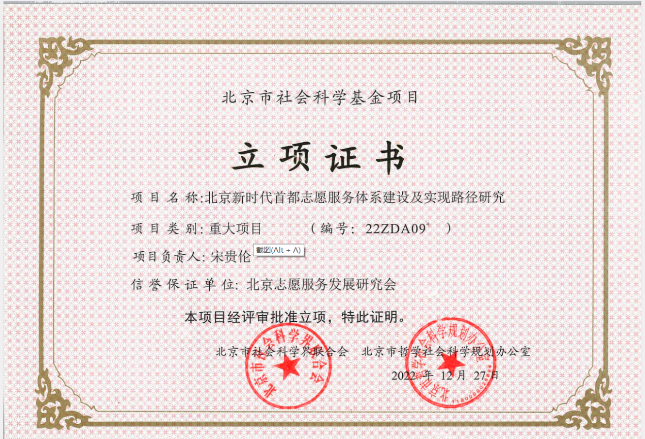 近期,福利姬 宋贵伦教授主持的项目《北京新时代首都志愿服务体系建设